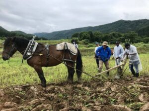 2018年から始まった「馬耕伝習会」は、岩間さんが仲間の馬方たちに声掛けをして(一社)馬搬振興会との共催で行われてきました